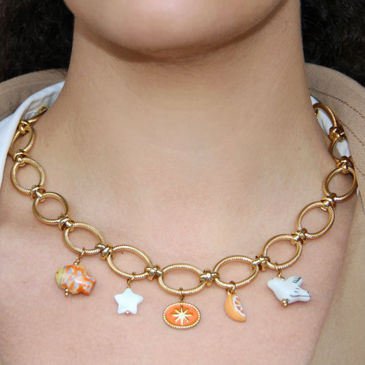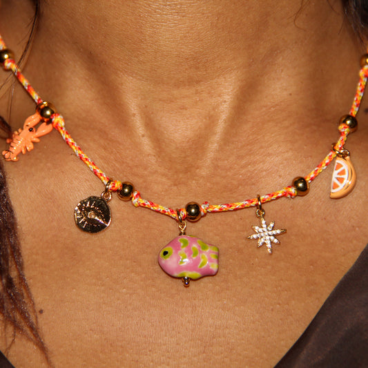 COLLIER PERLES RONDES PERSONNALISABLE 13 CHARMS